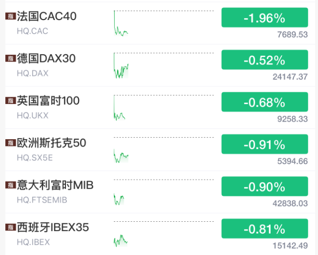 8月26日傍晚,欧洲股市开盘暴跌,法国股市暴跌约2%!