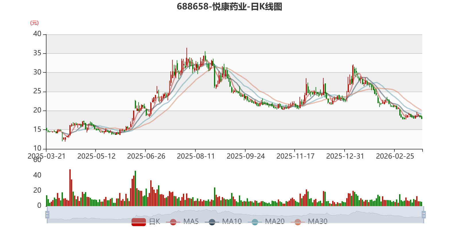 中证智能财讯悦康药业(688658)3月21日泄漏2025年年度论说。2025年,公司已毕商业总收入24.46亿元,同比下落35.30%;归母净利润吃亏2.62亿元,上年同时盈利1.24亿元;扣非净利润吃亏2.88亿元,上年同时盈利1.11亿元;操办活动产生的现款流量净额为3.4亿元,同比下落22.35%;论说期内,悦康药业基本每股收益为-0.59元,加权平均净钞票收益率为-7.61%。