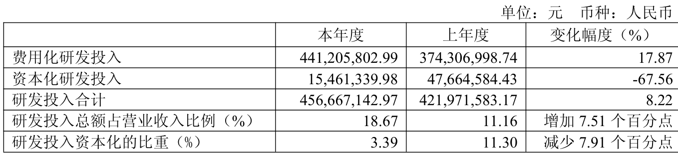 2025年全年,公司研发参加金额为4.57亿元,同比增长8.22%;研发参加占商业收入比例为18.67%,比拟上年同时上涨7.51个百分点。此外,公司全年研发参加老本化率为3.39%。